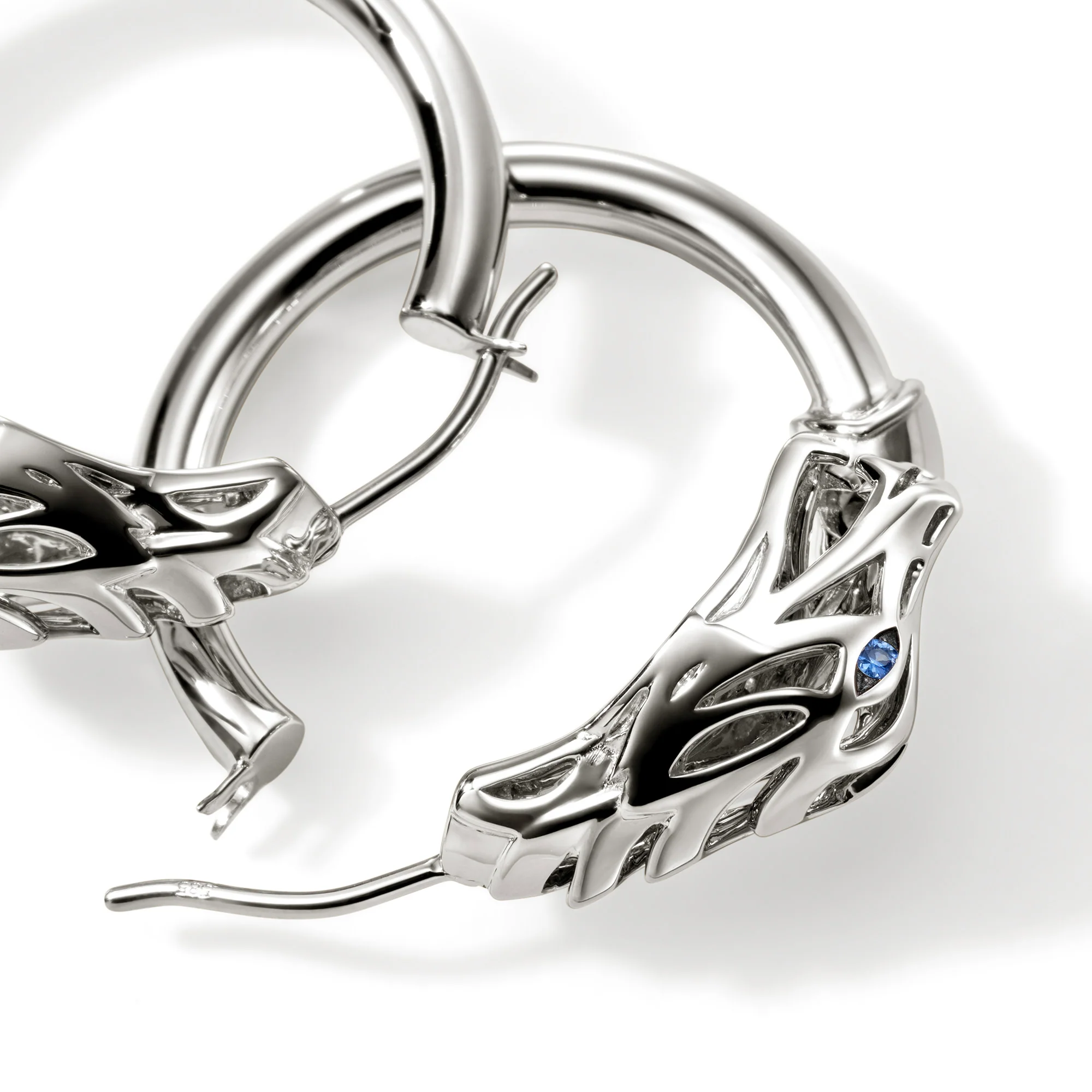 Faszinierende Creolen im Naga-Design mit Saphiren in Sterling Silber
