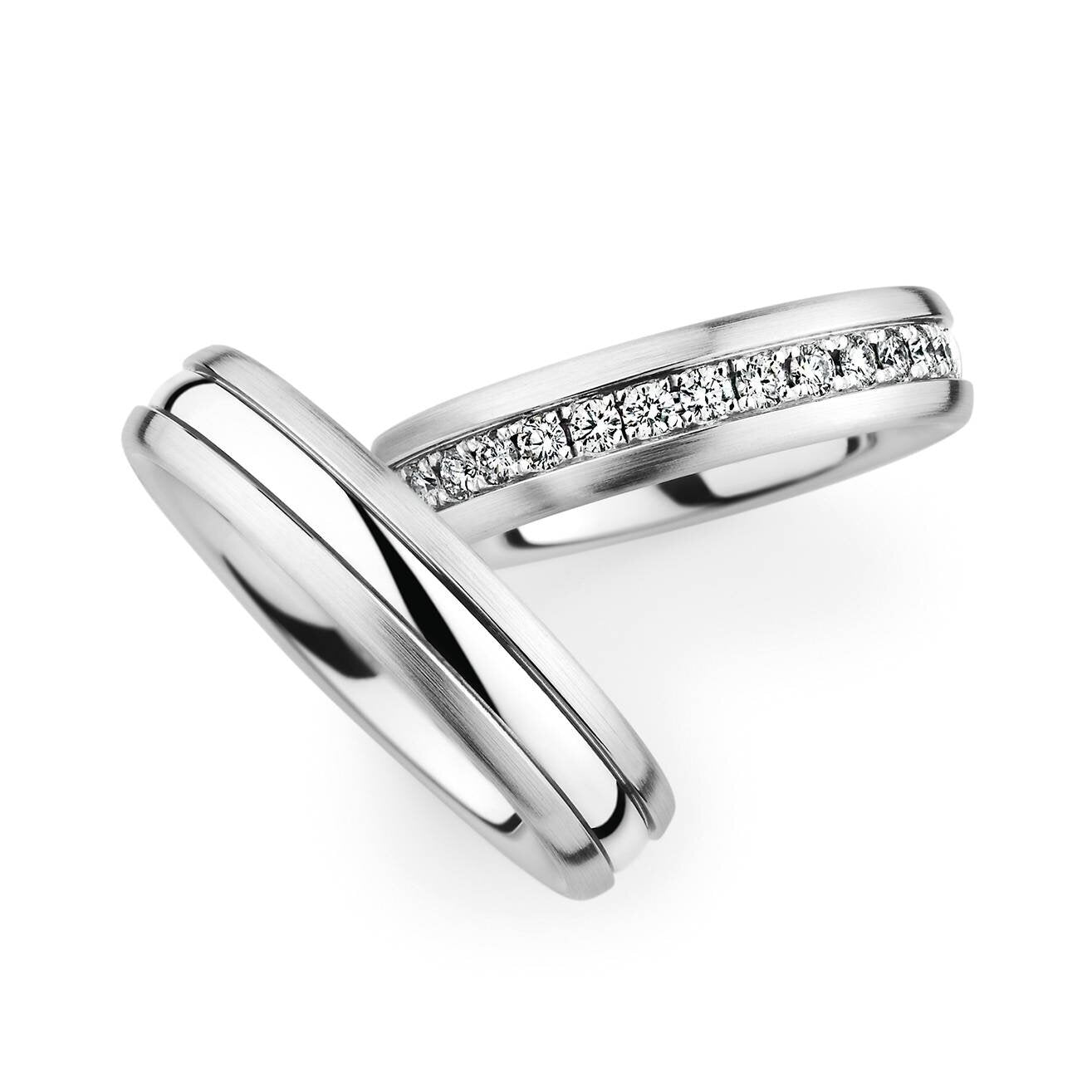 Trauringe - Weißgold matt & poliert mit 32 Diamanten (0,71 ct.)